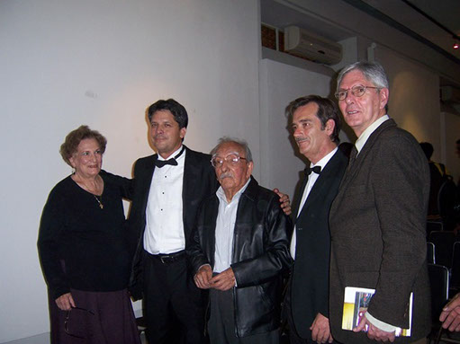 L-R: Leonor Montijo (pianist), Lorenzo Sánchez, Domingo Lobato, Konstantin Ziumbilov (violinist), Mario Lavista (composer)